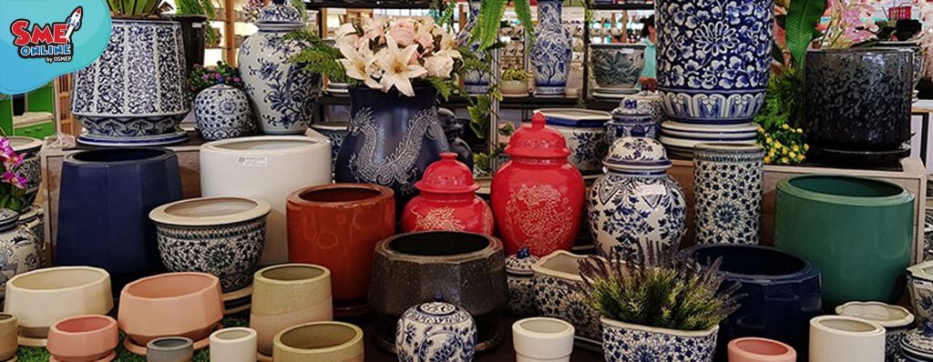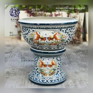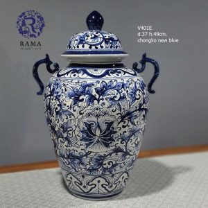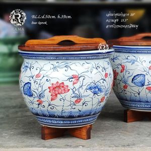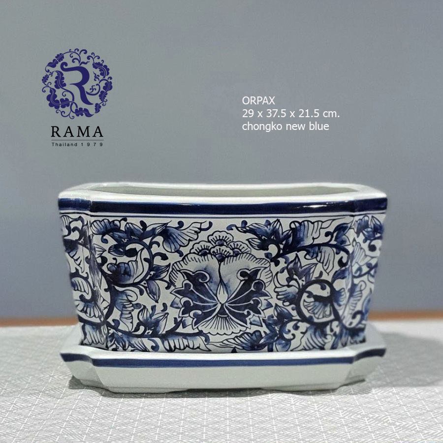 กระถางสี่เหลี่ยมผืนผ้า พร้อมจานรอง OPRAX ลายดอกชงโคน้ำเงิน