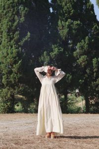 ชุดเดรสผ้าฝ้าย-สีครีม