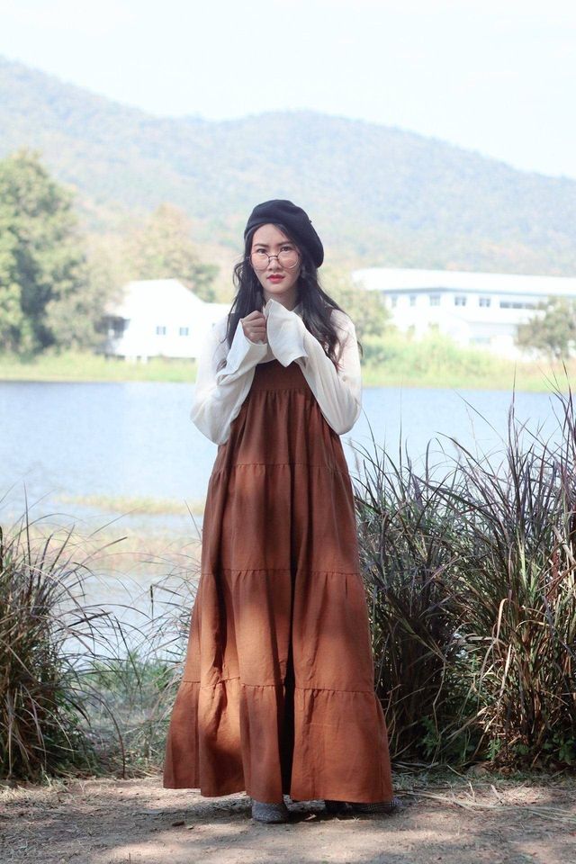 ชุดเดรสผ้าฝ้าย-สีน้ำตาล